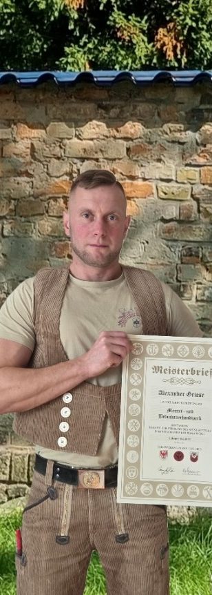 Meine Ausbildung sowie meine anschließende Tätigkeit als Geselle absolvierte ich in einem renommierten Potsdamer Bauunternehmen mit Spezialisierung auf Baudenkmalpflege. Dort konnte ich meine fachlichen Kompetenzen vertiefen, wertvolle praktische Erfahrungen sammeln und mein handwerkliches Können kontinuierlich ausbauen.